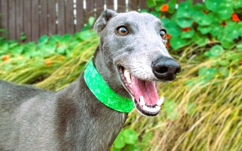 Barb is a sweet, petite greyhound with a heart full of courage and a gorgeous blue coat that she wears with absolute confidence. She may be a three‑legged girl now, but she certainly doesn’t see herself as anything less — she’s too busy enjoying life and sniffing out her next adventure!