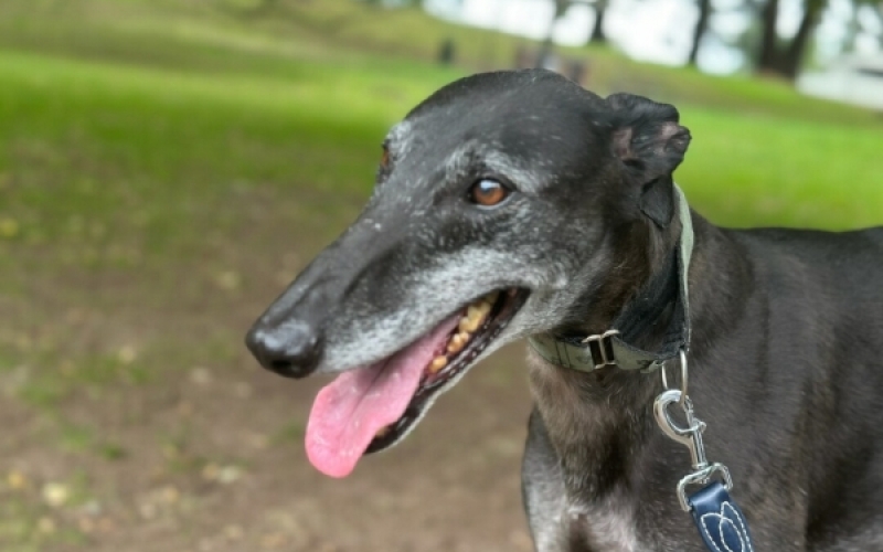 Amos is a lovely boy. He’s quiet and clean in his kennel, walks nicely on the lead, and has great manners around food. He gets on really well with his kennel mates, and he did very well through his assessments. Amos loves being handled and is a very affectionate hound.