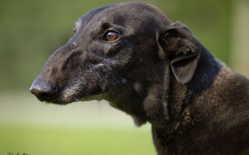 He has been good with small dogs and other greyhounds. While he may approach quickly at first, he settles once introductions are made and has shown appropriate judgement in disengaging when needed.